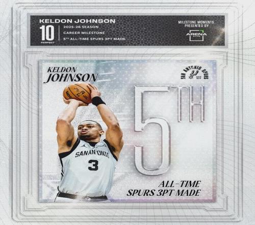 馬刺這邊,也有球員實現(xiàn)里程碑:凱爾登-約翰遜馬刺生涯三分命中數(shù)達到662記,超越鮑文升至隊史第五。馬刺隊史三分命中數(shù)前四名分別是:吉諾比利(1495)、帕蒂-米爾斯(1171)、丹尼-格林(959)、瓦塞爾(755)。