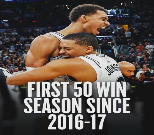 自1976-77賽季ABA和NBA聯(lián)盟合并以來,馬刺已經(jīng)取得28次單賽季50勝,同期聯(lián)盟第一。第二是湖人的27次,第三是凱爾特人的22次。截至今天,湖人43勝25負,凱爾特人45勝23負,這兩支球隊本賽季同樣有望拿到50勝。