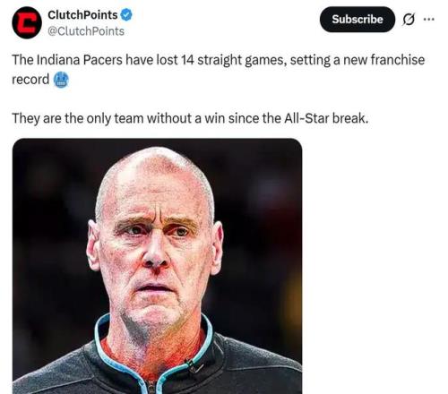 步行者隊的處境也是如此,從上個賽季總決賽搶七遺憾不敵雷霆的總冠軍,迅速淪為本賽季無底線擺爛的魚腩球隊,如今還遭遇14連敗打破隊史最差紀錄。