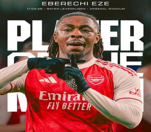 阿森納2-0戰勝勒沃庫森,總比分3-1晉級歐冠八強,本場比賽打入一球的埃澤賽后當選了隊內最佳球員。