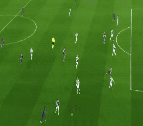 開場之后6分鐘,巴薩就打出經典配合,費爾明送出助攻,拉菲尼亞禁區內冷靜施射,打破僵局。
