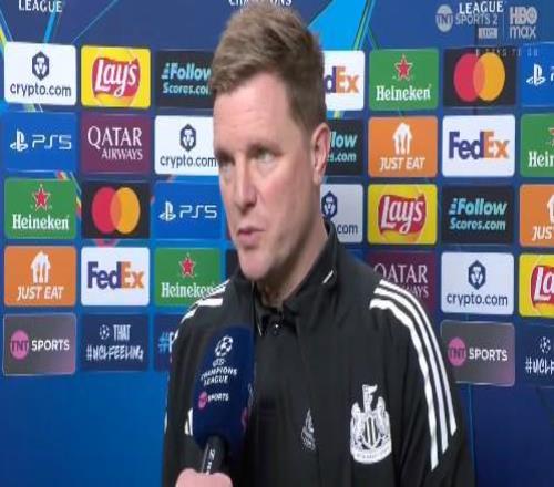 歐冠1/8決賽次回合,紐卡客場對陣巴薩,紐卡主帥埃迪-豪賽前接受了TNT體育的采訪。