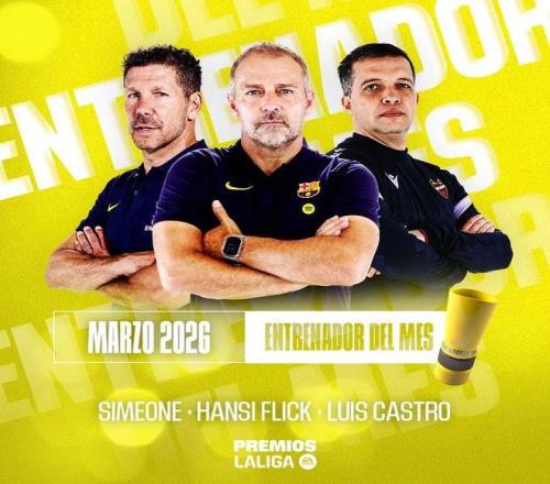 北京時間3月19日凌晨,西甲官方公布了3月最佳主帥的候選名單,其中馬競主帥西蒙尼、巴薩主帥弗里克和萊萬特主帥路易斯-卡斯特羅在列。