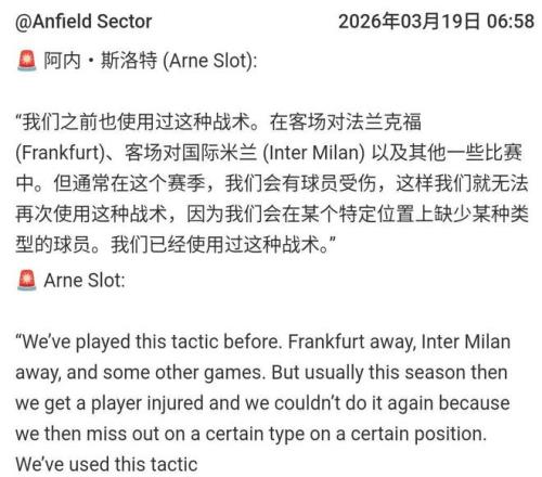 斯洛特賽后表示他踢國米、法蘭克福等球隊就用過這套,但因為伊薩克、右邊后衛輪流傷病,就沒法持續,他也承認這套其實“挺合適”的。
