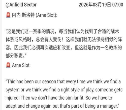 2天后聯賽繼續爭五,歐冠面對衛冕冠軍大巴黎,斯洛特的大考從未結束。