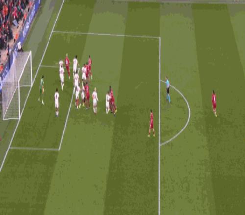 第25分鐘,麥卡戰術角球助攻索博破門,利物浦1-0扳平總比分
