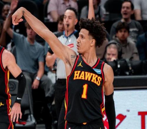 首發出戰的新援麥科勒姆表現不俗,在得分和組織方面,都給杰倫約翰遜分擔了不小的壓力,四節戰罷靠著14投9中的發揮,交出了24分、7次助攻和2次搶斷的全面數據,替補登場的庫明加則扛起了二陣容的得分大旗,打出了16+5+3+1的不俗表現,在他為老鷹出戰的比賽中,球隊保持了100%勝率。