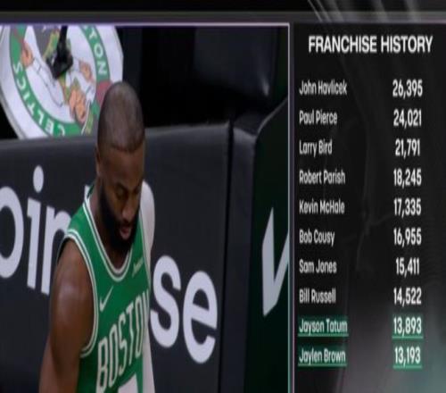 凱爾特人雙探花塔圖姆與布朗均是轟下20+得分,且兩人已經合計193次同場得分20+,超越拉里-伯德與帕里什同場192次20+,升至凱爾特人隊史第三位,率隊輕松戰勝勇士鞏固東部第二。
