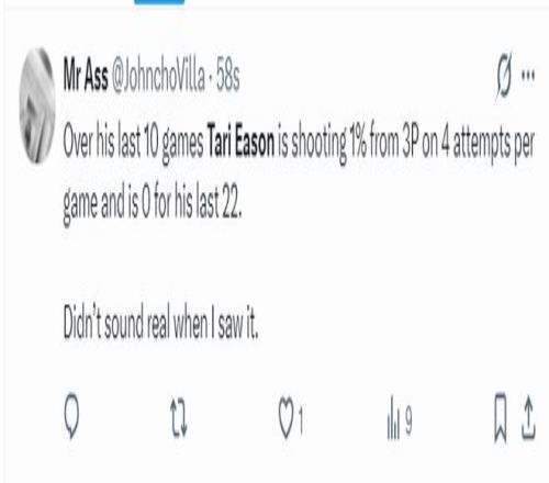 休媒:伊森應該停止個人進攻,他就該專注防守,他在進攻端的表現實在是太糟糕。