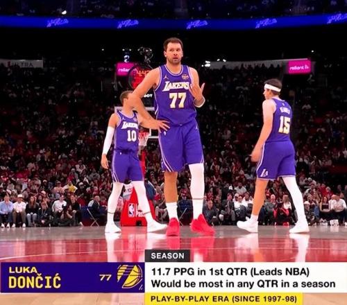 東契奇首節(jié)13分后,他又創(chuàng)紀(jì)錄了,本賽季首節(jié)場均11.7分,是有記錄以來單節(jié)場均得分最多的球員(97-98賽季)。