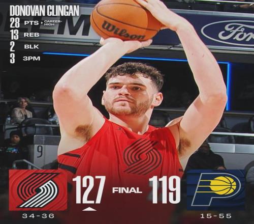 北京時(shí)間3月19日,NBA常規(guī)賽,開(kāi)拓者127-119戰(zhàn)勝步行者。開(kāi)拓者中鋒克林根出戰(zhàn)25分鐘,投籃19中10,三分5中3,罰球6中5,砍下28分13籃板2助攻1搶斷2蓋帽,正負(fù)值+8。單場(chǎng)28分創(chuàng)克林根生涯新高,此前紀(jì)錄是24分。