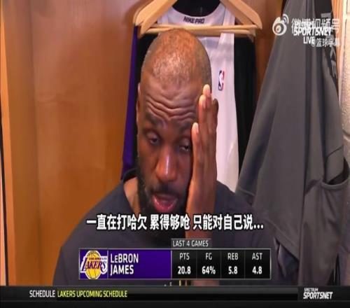 3月19日消息,3月19日結(jié)束的NBA常規(guī)賽中,湖人124-116客場擊敗火箭,豪取七連勝。本場比賽,41歲的湖人老將詹姆斯爆砍30分5籃板,賽后詹姆斯表示,其實自己賽前狀態(tài)很差,一直打哈欠,也一直在自我勉勵挺一挺。