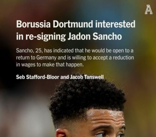來自TA的消息表示,多特蒙德有意在今年夏天再次簽下桑喬,球員也希望能夠返回德甲,如果重新加盟多特蒙德無疑是對桑喬最有吸引力的選擇。當(dāng)然,不管加盟任何球隊(duì),桑喬都需要接受降薪,甚至是大幅度降薪。他在曼聯(lián)的周薪超過30萬英鎊,以他如今的表現(xiàn)以及可以選擇的球隊(duì),不可能獲得同水平的薪水,只要還想繼續(xù)留在歐洲,降薪是桑喬必須要接受的選擇,加盟任何球隊(duì)都是如此。