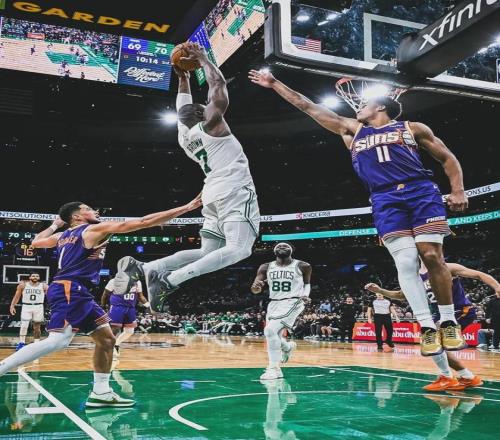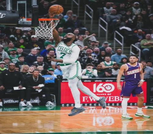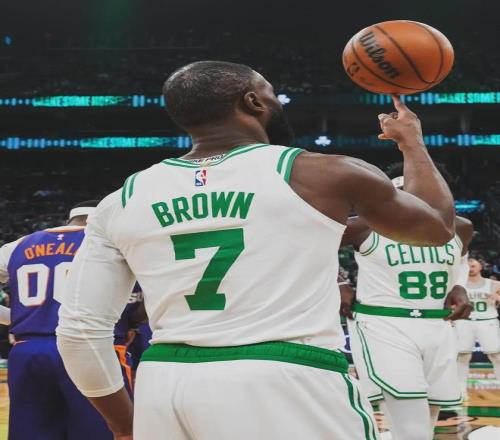本賽季杰倫-布朗首發出戰62場比賽,場均出戰34.1分鐘,得到28.5分7籃板5.1助攻1搶斷0.4蓋帽3.6失誤,三項命中率:48%,34.2%,79.6%。布朗本賽季已經31場砍下30+,暫列凱爾特人隊史第六,距離第五的皮爾斯僅差2場。