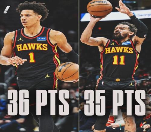 后特雷楊時代的老鷹,在新鷹王杰倫-約翰遜帶領下重新展翅高飛,后者現年24歲,身高2米03的大前鋒,本賽季至今場均22.9分10.5板8.1助1.3斷全面數據進賬,三項命中率49.3%、35%和78%。