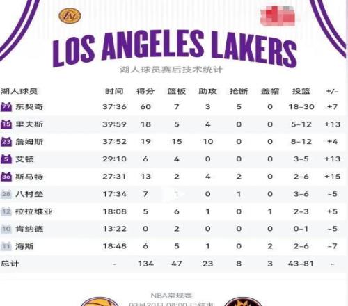 正是二人默契配合、相互成就,才讓湖人從懸崖邊緣強勢回身,贏下這場關乎士氣與排名的關鍵戰役,也為后續沖擊更高目標注入堅實信心。