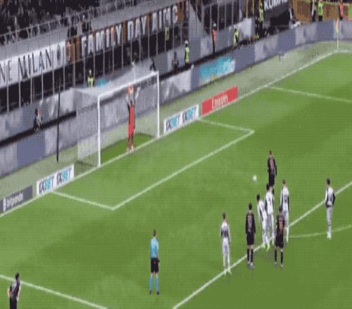 第36分鐘,帕夫洛維奇外腳背撩射,皮球劃過(guò)一道優(yōu)美的弧線,越過(guò)門將頭頂,米蘭取得領(lǐng)先。