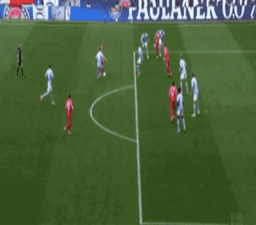 第43分鐘,格雷茨卡送出妙傳,奧利塞禁區(qū)內(nèi)雜耍一般停球,過(guò)人射門一氣呵成,拜仁取得領(lǐng)先。