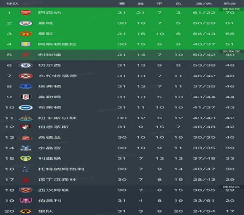 北京時(shí)間3月22日,英超第31輪在昨天到今天凌晨又結(jié)束了5場對(duì)決,我們看看最新積分榜變動(dòng),主要的信息是:利物浦1-2不敵布萊頓,切爾西0-3慘敗埃弗頓,富勒姆3-1伯恩利,利茲聯(lián)0-0布倫特福德,曼聯(lián)2-2伯恩茅斯!
