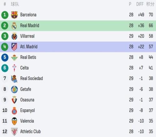 皇馬目前積66分排名西甲第2,落后榜首巴薩4分。在聯賽還剩10輪的情況下,銀河戰艦必須全力搶分,為5月11日與巴薩的直接對話積蓄資本。馬競積57分排名第4,落后第4名比利亞雷亞爾1分,領先貝蒂斯的13分,歐冠席位相對穩固,但與爭冠集團已拉開較大差距。