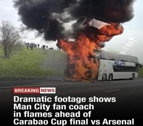 北京時(shí)間3月23日,一輛搭載曼城球迷的大巴在英國(guó)一處高速公路突發(fā)起火,打亂了球迷們前往英聯(lián)杯決賽現(xiàn)場(chǎng)的行程。