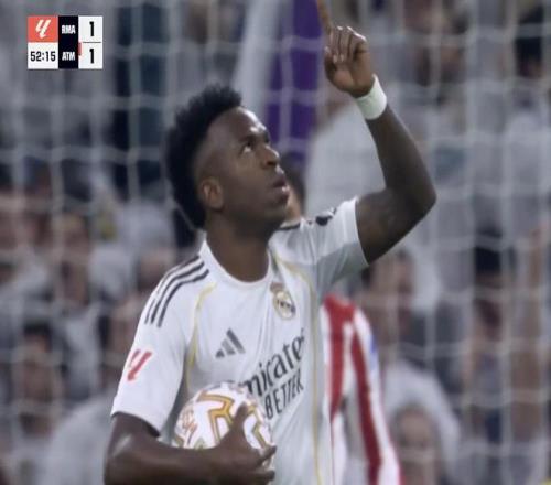 此役主場對陣馬德里競技,首發出戰的維尼修斯在比賽第52分鐘罰入由卜拉欣-迪亞斯制造的點球,幫助皇家馬德里1-1扳平比分。