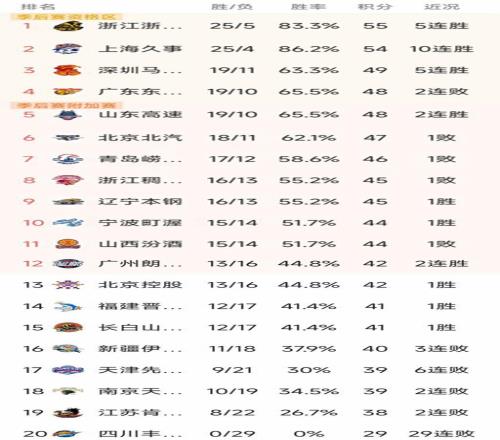 CBA最新積分榜