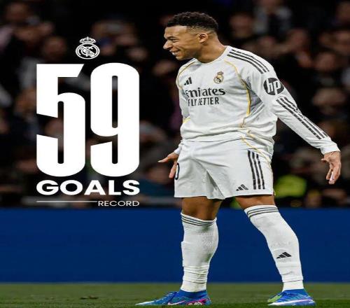 12月10日,皇馬主場對陣曼城的歐冠比賽中,姆巴佩未獲得出場時間。此后,在2025年所剩的三場比賽中,姆巴佩均打滿全場,并在自己生日當天,打入2025年度的第59球,追平了由C羅保持的皇馬球員自然年進球紀錄。