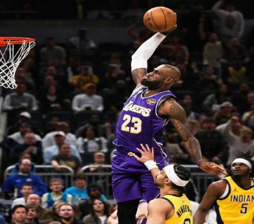 3月26日,湖人137比130擊敗步行者,本場比賽詹姆斯出戰(zhàn)34分鐘,全場17投9中,貢獻23分9籃板9助攻,順便一提,詹姆斯今天和布朗尼一同登場比賽。