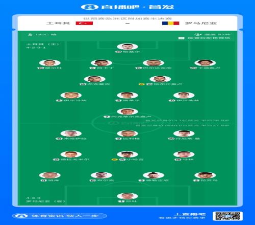 體育播報03月26日宣 北京時間3月27日1:00,世預賽歐洲區附加賽,土耳其vs羅馬尼亞。賽前雙方公布了本場比賽的首發陣容。本場比賽的勝者將對陣斯洛伐克vs科索沃比賽的勝者,決出世界杯正賽名額。