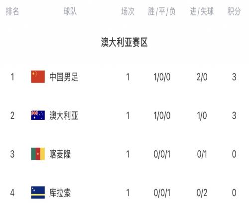 本輪過后,中國隊以凈勝球優勢暫居小組第一。