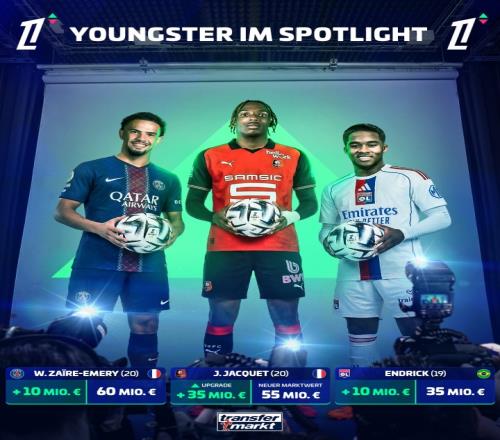 體育播報03月27日宣 今日德轉(zhuǎn)更新法甲球員身價,維蒂尼亞、若昂·內(nèi)維斯仍1.1億歐領(lǐng)跑,格林伍德漲至5500萬,利物浦新援雅凱暴漲3500萬至5500萬,恩德里克漲至3500萬。