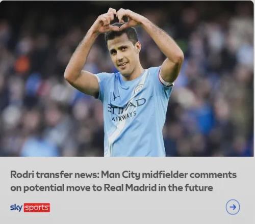 天空體育了解到,曼城希望續約羅德里,但在被問到未來問題時,曼城球星表示:“我的合同還有一年到期,到了那個時間點,我們會坐下來談談這個問題。弗洛倫蒂諾想為皇馬簽下我?我不知道,他們沒有跟我說過這個事情,他們可以和我的經紀人談。