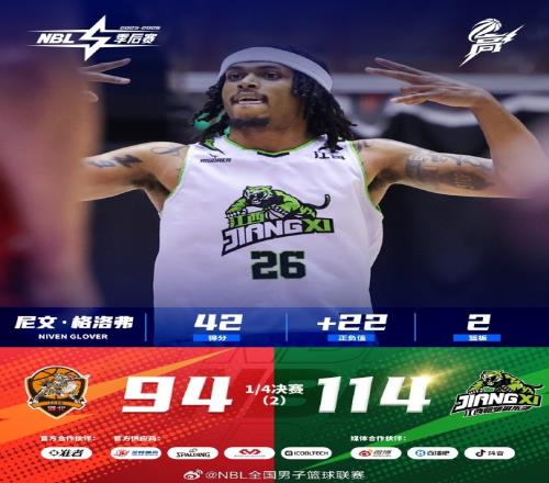 本場季后賽 1/4 決賽 G2,雙方開局便展開激烈對攻,江西鯨裕清酒憑借高效進攻率先建立優(yōu)勢,石家莊翔藍則在第三節(jié)掀起強勢反撲,一度迫近比分;關鍵時刻江西穩(wěn)扎穩(wěn)打,始終保持場上主動權,最終客場取勝,以總比分 2-0 鎖定晉級名額!江西鯨裕清酒的26號尼文-格洛弗本場火力全開,砍下全場最高得分,正負值領跑全隊,成為球隊鎖定勝局的核心功臣! 本次系列賽采用三場兩勝制(1-1-1),江西鯨裕清酒連勝兩場,成功挺進季后賽第二階段;石家莊翔藍雖遺憾止步八強,但本場比賽展現出的頑強韌性與拼搏精神值得肯定,期待下賽季再戰(zhàn)!