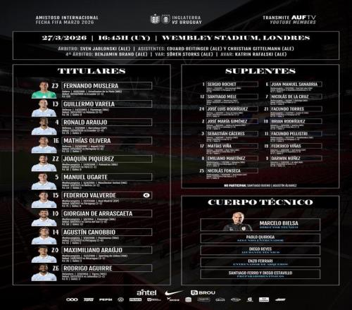 北京時間3月28日03:45,一場友誼賽的對決。英格蘭對陣烏拉圭。賽前,雙方的陣容公布如下: