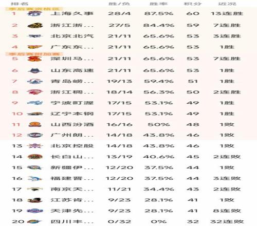 CBA最新積分榜