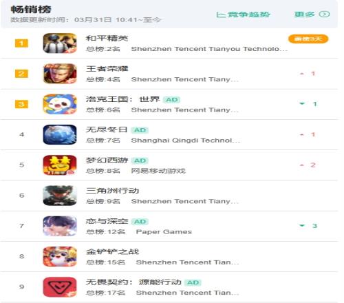 體育播報3月31日宣基于童年回憶“洛克王國”IP,所開發的游戲《洛克王國:世界》在2026年3月26日正式上線后熱度大爆,在各大APP榜單上都名列前茅。