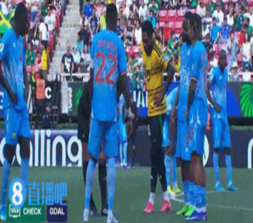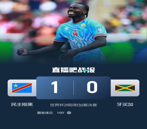 第100分鐘,民主剛果左側角球開出,圖安澤貝門前撞射破門!VAR長時間介入檢查,最后判定進球有效!民主剛果1-0領先牙買加↓