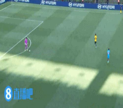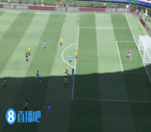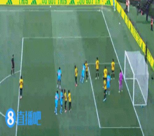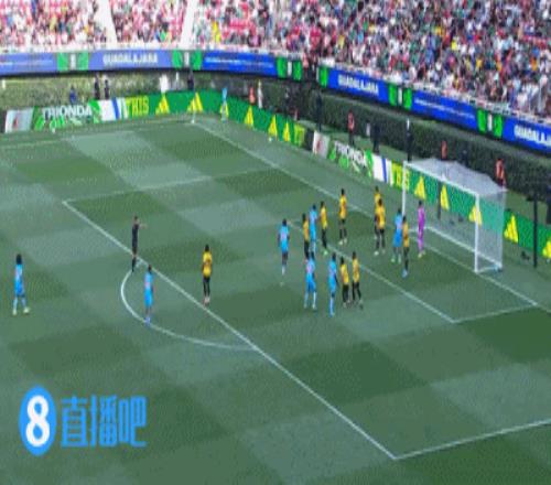 第30分鐘,牙買加右路橫傳到禁區內,皮球做到弧頂,一腳迎球怒射,被后衛擋出底線↓