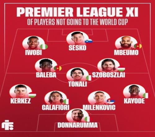 隨著世界杯參賽48隊全部確定,一些知名球星只能以觀眾身份觀戰(zhàn)。英國媒體Football Insider評出了無緣世界杯英超11人,索博、托納利、舍什科、姆伯莫在列。