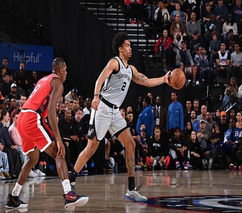 本場比賽中,馬刺的替補后場新秀迪倫-哈珀(Dylan Harper)的表現算得上是令人刮目相看。哈珀全場出場25分01秒,投籃12中8,三分線外3中2,罰球1中1,以超高的效率得到了19分2籃板5助攻1搶斷的數據,還有2次失誤和4次犯規,正負值為+11。哈珀在進攻端展現出了自己全面的得分能力,他有著相當不錯的突破能力和終結能力,他也展現出了自己在外線投籃方面的穩定性,而且他在傳球和組織方面的表現也是令人眼前一亮的。除此之外,哈珀在防守端的表現也算是中規中矩,也沒有出現什么太大的問題。總體來看,哈珀在本場比賽中算是展現出了自己全面的個人能力,并且為球隊的這場大勝做出了不小的貢獻。