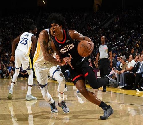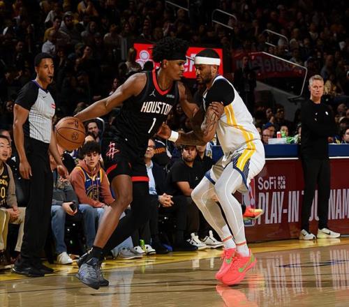 本場比賽中,火箭的先發后場新星阿門-湯普森(Amen Thompson)又一次將自己在攻防兩端的能力都發揮了出來。阿門全場出場39分29秒,投籃11中8,罰球4中2,得到了18分3籃板7助攻1搶斷的數據,還有2次失誤和2次犯規,正負值為+2。阿門在進攻端不斷通過沖擊對手內線制造威脅,他將自己在運動能力方面的優勢發揮到了極致,他也是在對手內線制造了不小的威脅并且得到了不少的分數。除此之外,阿門也展現出了一定的傳球能力和組織能力,在進攻端的功能非常全面。最關鍵的是,阿門在防守端的表現也是相當不錯的,他在場上時也是能夠對斯蒂芬-庫里(Stephen Curry)進行有效地限制的。阿門在本場比賽中算是發揮出了自己在攻防兩端的特點,這也為球隊的勝利做出了不小的貢獻。