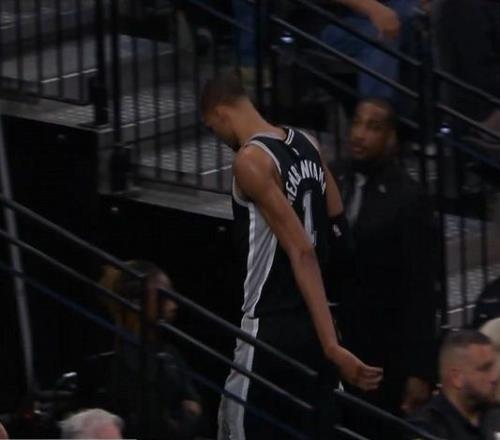 文班亞馬上半場兩度受傷返回更衣室,馬刺之后宣布他因為左肋骨挫傷退賽。