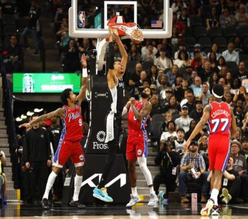 首節(jié)開打,保羅-喬治三分線外搭弓射箭接球穩(wěn)穩(wěn)命中,為76人拔得頭籌。瓦塞爾擋拆后繞外接球三分也投進(jìn),立馬還以顏色。卡斯?fàn)栔w文班,但自己被德拉蒙德踢到膝蓋,返回更衣室檢查。文班轉(zhuǎn)身抹入內(nèi)線,輕松暴扣打成2+1,技驚四座。恩比德中投命中之后搖頭,并不斷活動(dòng)膝蓋,傷還沒好利索?馬刺防守反擊,文班大步向前俯視籃筐單臂空接,這既視感真是夸張恐怖。恩比德突破反手上籃也打進(jìn),首節(jié)結(jié)束,76人以28-29落后馬刺。