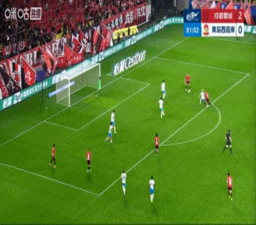 第82分鐘,費利佩禁區內原地輕松推桿,成都3-0領先西海岸