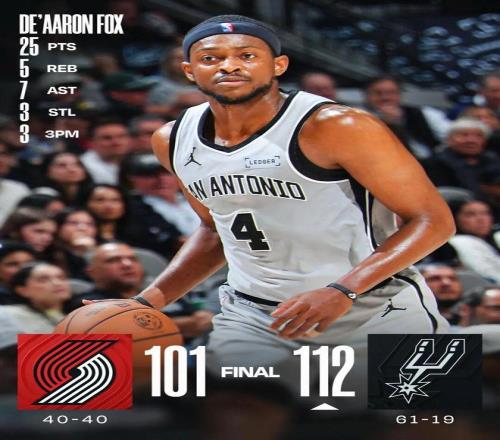常規賽,馬刺主場112-101戰勝開拓者。