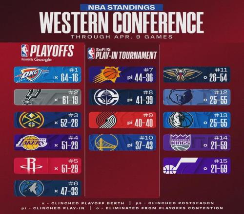 湖人明天背靠背打太陽,常規(guī)賽收官打西部墊底的爵士。為了全力備戰(zhàn)附加賽,布克已經(jīng)確定明天不打,杰倫-格林出戰(zhàn)成疑。這樣一來,湖人拿下最后兩場問題不大。掘金收官戰(zhàn)硬剛馬刺,如果掘金輸給馬刺的話,就會跌至第四。