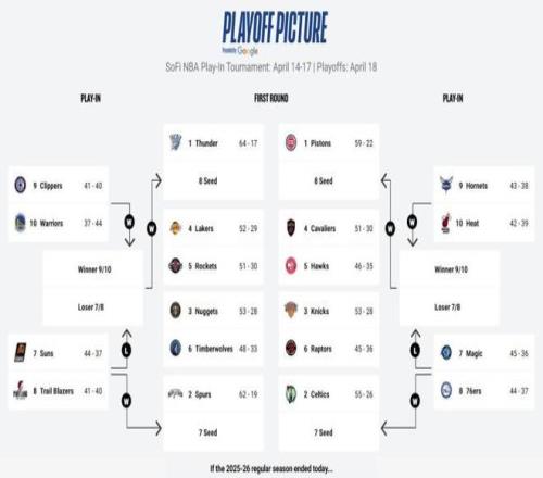 東部前4名的順位已經(jīng)完全確定,活塞、凱爾特人、尼克斯和騎士4支隊伍,將在季后賽首輪擁有主場優(yōu)勢。第5名老鷹隊也已經(jīng)鎖定了季后賽席位,不過他們的最終排名還沒有確定。