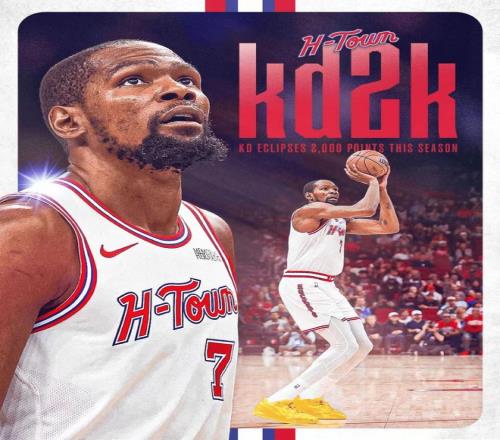 杜蘭特(37歲零193天)本賽季總得分突破2000分里程碑,超越卡爾-馬龍(36歲零263天)創造歷史最老單賽季2000分紀錄。