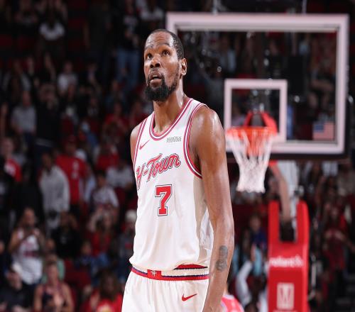 本場比賽,火箭球星杜蘭特表現出色,進攻高效但同時也很全能,但球隊還是輸球,打了39分鐘,投籃18中13,三分球1中0,罰球9中7,空砍33分7籃板7助攻1搶斷2蓋帽。